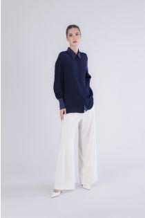chemise à bordure en satin navy