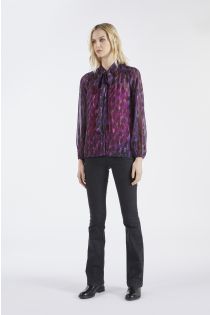 Chemise à col foulard romantique et féminine réalisée en fil coupé imprimé