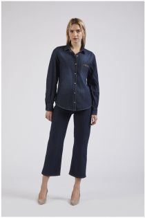 Chemise en toile de jean légère avec manches froncées. plaque personnalisée pour terminer la poche.