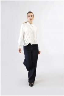 Chemise à manches longues en georgette de viscose. la taille est soulignée par un motif effet nœud. a associer avec du denim et à porter avec un blazer pour créer des looks décontractés et plus raffinés.