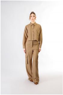 Chemise courte à poches plaquées en tissu grisaille. vêtement à manches longues en forme de boîte. un incontournable du dressing à porter en journée avec un pantalon ou un jean coordonné.