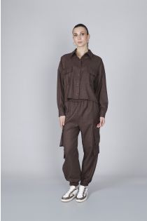 Chemise courte à la coupe carrée, manches longues et poches plaquées, idéale pour un look décontracté et moderne. Coupe ample. Le mannequin mesure 173 cm et porte une taille S.