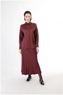 Chemise à manches longues en satin de viscose article teint en pièce. fermeture avec boutons ton sur ton. féminine et raffinée cette chemise se caractérise par sa coupe douce qui caresse la silhouette. parfait pour compléter des looks élégants combinés avec des articles de collection.