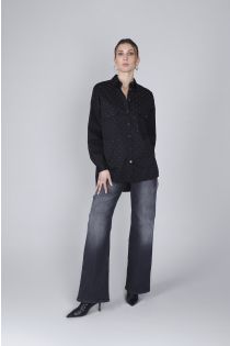 Chemise confortable en popeline de coton stretch ornée de micro-clous sur le devant. Manches longues et poches à rabat. Le mannequin mesure 173 cm et porte une taille S.
