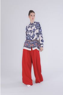 Chemise oversize en viscose marocaine imprimée à la coupe fluide et contemporaine. sa coupe ample met en valeur le mouvement du tissu offrant confort et élégance pour des looks raffinés au quotidien. le mannequin mesure 175 cm et porte une taille s. coupe : confortable.