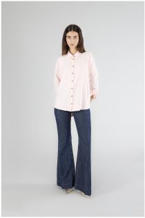 Chemise oversize confectionnée dans un tissu mélangé frais. manches longues retroussables. fermeture à bouton. un incontournable du dressing à porter en journée avec un pantalon ou un jean.