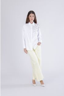 chemise oxford ornée de strass et de clous. white