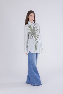 Chemise maxi rayée en popeline pour femme coupe ample et manches longues. la broderie ton sur ton sur le devant apporte caractère et élégance idéale pour des tenues raffinées au quotidien ou au bureau. le mannequin mesure 1.75 m et porte une taille s. confort optimal.