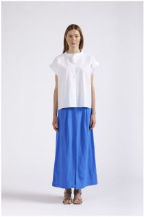 Chemisier sans manches en popeline de coton de ligne carrée avec un col mao.