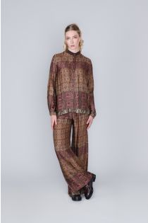 Blouse en satin de viscose imprimé, col mandarin et manches longues. Col et poignets contrastants à imprimé exclusif. Coupe classique. Le mannequin mesure 174 cm et porte une taille S.