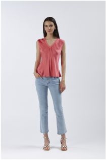 Chemisier sans manches avec encolure en satin de viscose. encolure en v. décontracté et raffiné à la fois ce chemisier est parfait pour toutes les occasions accompagné des bons accessoires.