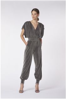 Combinaison à manches larges et pantalon type odalisque réalisé dans un tissu exclusif avec lurex. une touche d'éclat et d'extravagance pour rendre les soirées d'été uniques.