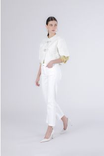 Doudoune courte de printemps pour femme ornée d'un élégant matelassage en losanges et d'une fermeture à brandebourg raffinée. manches courtes légère et polyvalente elle est idéale pour la mi-saison. le mannequin mesure 171 cm et porte une taille s. coupe : classique.