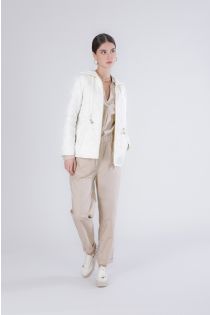 Doudoune de printemps pour femme à la coupe cintrée et féminine ornée d'un élégant matelassage en losanges. elle est dotée d'une fermeture éclair sur le devant d'une taille ajustable par cordon de serrage de manches longues et d'une capuche fixe. idéale pour la mi-saison. le mannequin mesure 1.75 m et porte une taille s. coupe : classique.