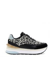 Chaussures de running en nylon imprimé animal, avec détails en cuir et semelle de 4 cm pour un confort optimal. Doublure en tissu et semelle intérieure en cuir. Logo latéral avec monogramme Café Noir. Audacieuses, légères et tendance.