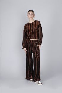 Sweat-shirt court en velours dégradé, col bateau et ourlet ajustable par cordon. Idéal pour un look décontracté et confortable. Coupe classique. Le mannequin mesure 173 cm et porte une taille S.