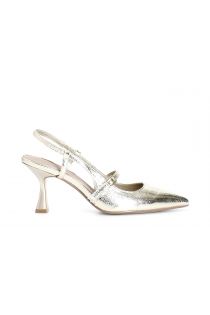 Décolleté avec bretelle et dentelle au dos. la semelle intérieure est en cuir. chaussure de forme fine. le talon mesure 7 cm.