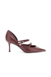 décolleté en cuir avec double bride bordeaux