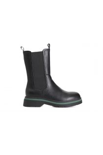 Bottines 3/4 pour femme en similicuir noir. élastique latéral pour faciliter l'enfilage. semelle en caoutchouc avec bande de couleur verte talon de 40 mm.