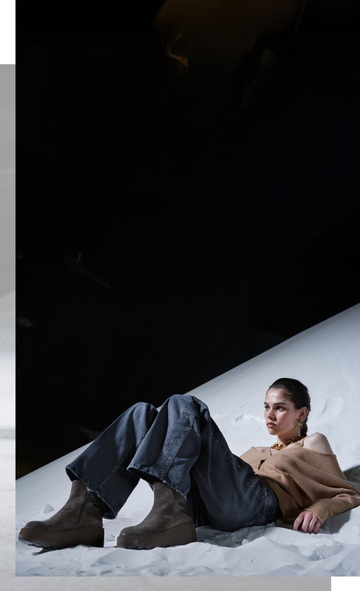 Bottines robustes et denim contemporain : confort et caractère pour évoluer naturellement entre les rendez-vous de la journée.