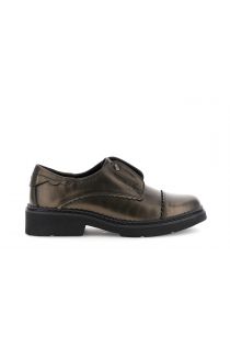 Derby pour femme en similicuir brossé, orné d'une bordure festonnée et d'un bouton décoratif. Semelle intérieure en cuir et talon confortable de 3,5 cm.