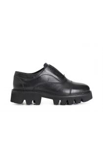 Derbies pour femme en cuir avec une touche masculine. semelle intérieure en cuir. fond « char d’assaut » et talon de 35 mm.