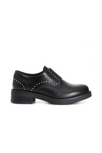 Derbies pour femme en similicuir brossé avec élastique et micro-cabochons chromés. la semelle intérieure est en cuir.
