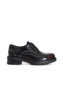 Derbies pour femme en similicuir brossé avec élastique et micro-cabochons chromés. la semelle intérieure est en cuir.