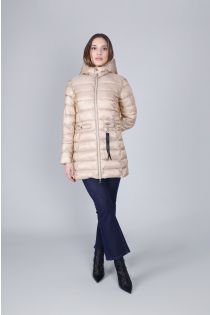 doudoune à capuche en tissu irisé sand
