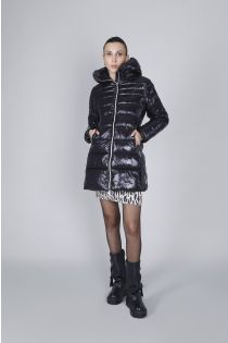 Doudoune mi-cuisse en tissu ultraléger avec capuche fixe, idéale pour un look décontracté. Confort et style pour les journées fraîches. Coupe classique. Le mannequin mesure 173 cm et porte une taille S.