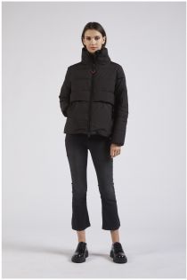 Doudoune au tissu opaque et au goût tecafènoiric. la combinaison de parties matelassées et non matelassées donne au vêtement une touche de modernité.