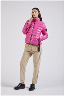 doudoune courte en tissu brillant bubble gum