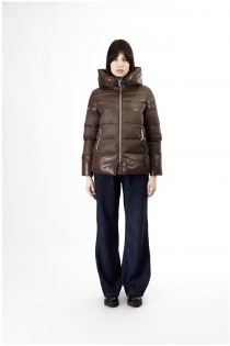 Doudoune au look audacieux et aux lignes essentielles avec capuche fixe en tissu ultraléger aux finitions contrastées brillantes et mates. polyvalent et pratique un article indispensable dans la garde-robe de la nouvelle saison automne-hiver.