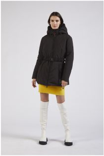 Doudoune matelassée avec un tissu opaque et une saveur tecafènoirico. la ceinture marque la taille.