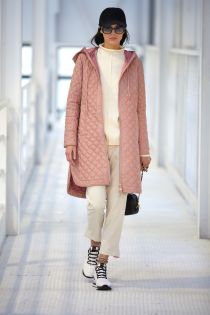 doudoune longue avec capuche et bordures en velours
