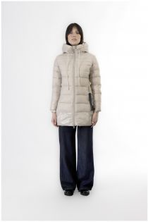Doudoune à capuche fixe en tissu ultraléger avec finitions contrastées brillant/mat. longueur genou. polyvalent et pratique un article indispensable dans la garde-robe de la nouvelle saison automne-hiver.
