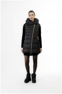 Doudoune sans manches à ligne évasée et col enveloppant confectionnée en nylon mat. fermeture zippée à double curseur. article idéal pour les tenues décontractées du quotidien.