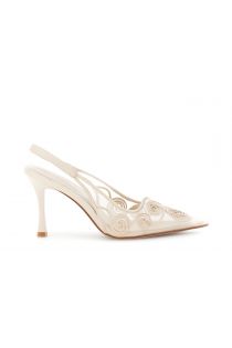 escarpin à bride arrière orné de broderies cornées beige