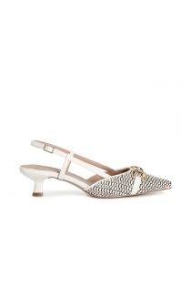 Escarpin à bride arrière effet raphia avec dentelle et mors. forme mince. semelle intérieure en cuir. talon de bobine de 5 cm. des chaussures qui allient élégance et modernité. idéal pour ajouter une touche sophistiquée à n'importe quelle tenue.