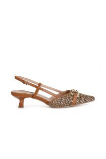 Escarpin à bride arrière effet raphia avec dentelle et mors. forme mince. semelle intérieure en cuir. talon de bobine de 5 cm. des chaussures qui allient élégance et modernité. idéal pour ajouter une touche sophistiquée à n'importe quelle tenue.