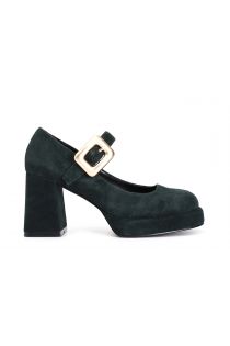 Escarpins en daim avec bride et fermeture à boucle. talon de 80 mm et plateforme de 20 mm. la semelle intérieure est en cuir. confort et élégance à la fois et un caractère unique qui s'adapte à toutes les tenues.