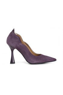 Escarpins en daim pour femme au style élégant et féminin. chaussures enrichies d'un motif ondulé en cuir spécial. talon étroit légèrement à bobine 95 mm de hauteur. semelle intérieure en cuir souple.