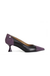 Escarpins bicolores pour femme en daim et cuir nappa au style élégant et féminin. talon bobine de 65 mm de hauteur. semelle intérieure en cuir souple.