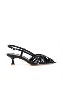 Escarpins avec bride derrière. empeigne cage effet verni. forme effilée. talon bobine de 45 mm de haut. chaussures mode à porter tous les jours pour répondre aux exigences d'un mode de vie dynamique.