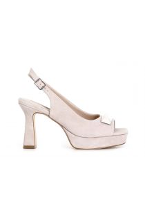 Escarpins avec bout ouvert en daim avec accessoire. bride avec boucle réglable. semelle intérieure en cuir. plateforme de 25 mm de haut. talon haut de 90 mm.