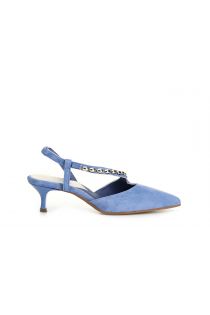Escarpins en daim avec bride asymétrique et chaîne décorative