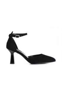 Escarpins en daim avec contrefort et bride avec boucle à la cheville. semelle intérieure en cuir. talon haut de 75 mm.