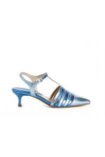 escarpins en similicuir laminé avec bandes latérales et boucle multi azure