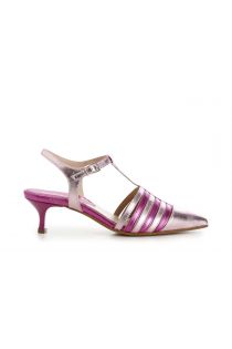escarpins en similicuir laminé avec bandes latérales et boucle multi fuchsia