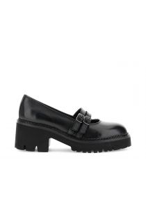 Escarpins Mary Jane en cuir avec double bride ajustable. Doublure et semelle intérieure en cuir, semelle crantée et talon de 6,3 cm. Un modèle audacieux et féminin pour un look urbain affirmé.